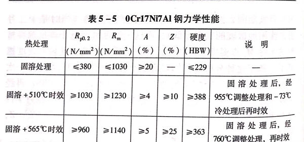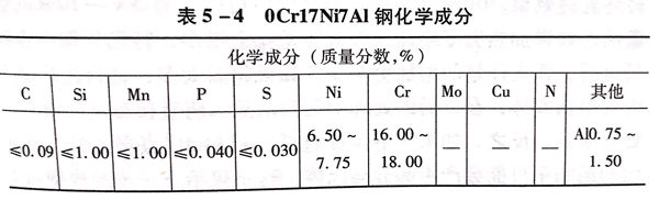 0Cr17Ni7Al 中的沉淀硬化元素是铝,在时效时,以镍一部化合物析出的形式使钢得到硬化。