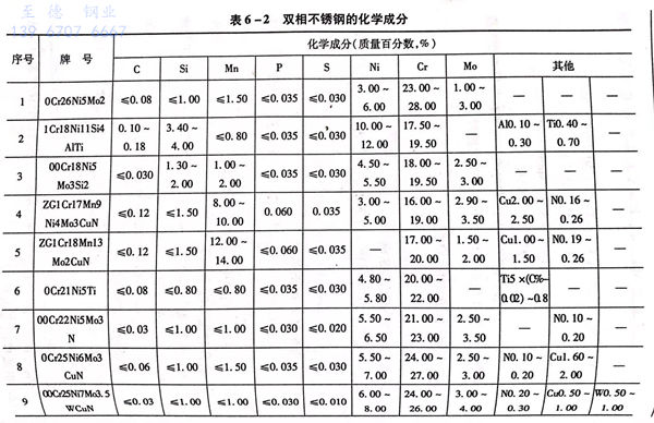 00Cr25Ni7Mo3.5WCuN钢的化学成分见表6-2,机械性能标准见表6-3。