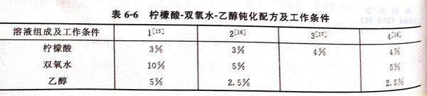 1. 柠檬酸-双氧水-乙醇钝化配方及工作条件