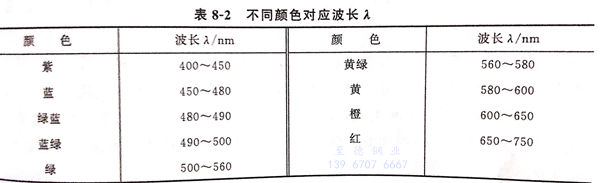 通过光干涉相互加强,对应于该波长光的色调被加强而显示出符合于该波长的色彩,不同颜色对应波长入见表8-2。