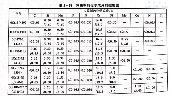 为了顺利生产冷镦螺栓对各类不锈钢的化学成分予以严格控制,一些常用牌号通常按表2-51规定进行执行。