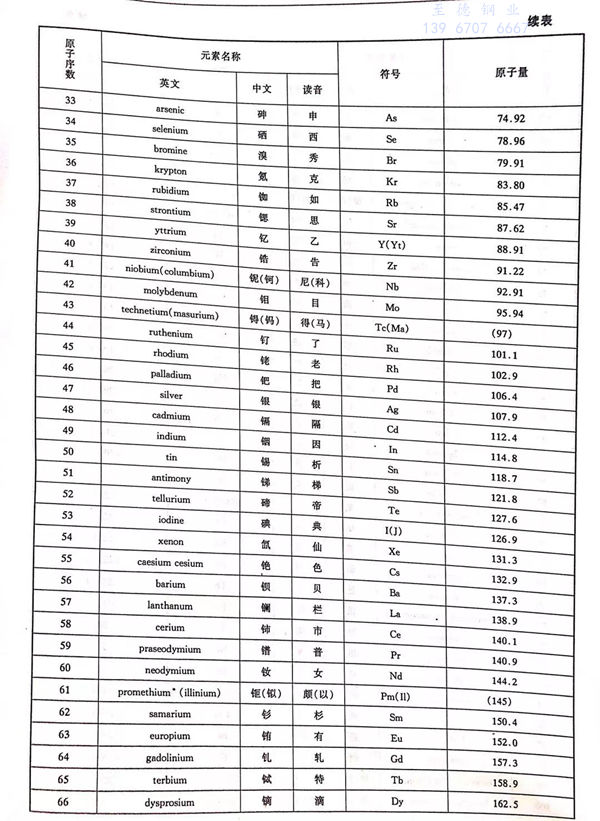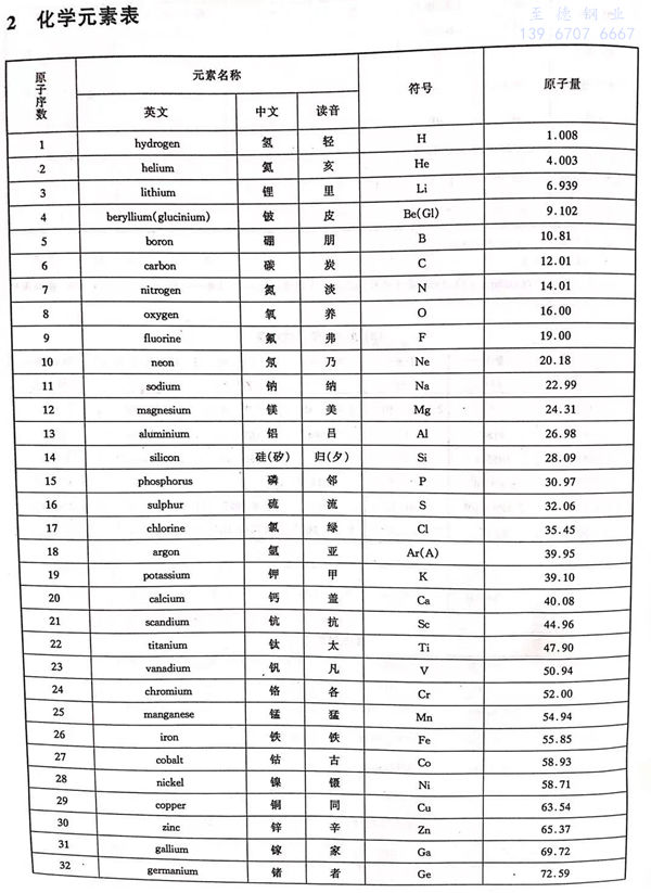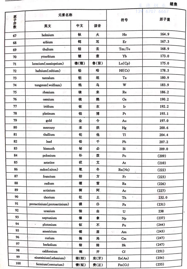 化学元素名称、英文、中文、符号、原子量和原子序列 对照表