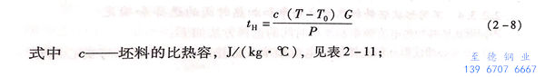 采用感应加热炉加热时,加热时间很短,当感应炉的功率、电压、电流频率一定时,可用式近似计算加热时间。