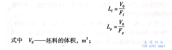 在预钻孔坯料直接扩孔时,扩孔力可以按照实心坯料穿孔的公式计算,取低于其25%~30%的穿孔力。坯料在镦粗和穿孔过程中,其长度发生两次变化,镦粗后坯料被压缩变短,其期向减小的体积等于径向增加的体积。穿孔之后,坯料长度变长,轴向增长的体积等于穿孔头所穿出的整个内孔的体积。制定工艺制度时,可按下式确定镦粗坯料的长度和穿孔后坯料的长度:Lp: