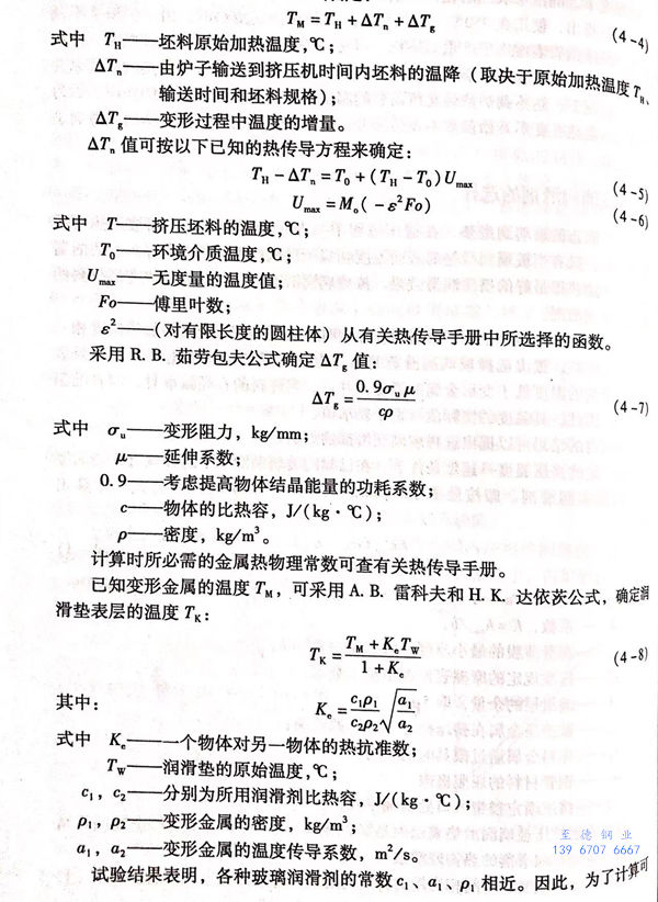 接着确定挤压玻璃润滑垫表层所达到的温度 Tk ,其取决于变形金属的终结温度以及金属与润滑剂的热物理常数。