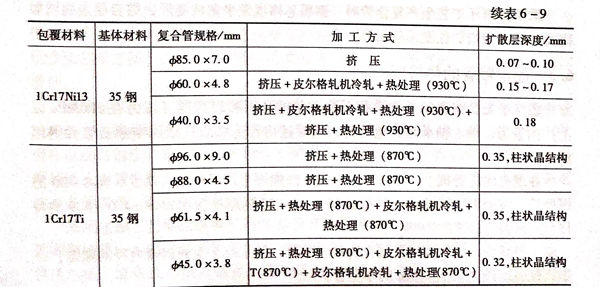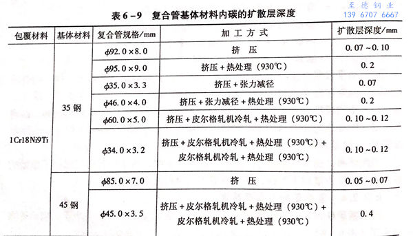 不锈钢复合管基体材料内碳的扩散层深度见表6-9.