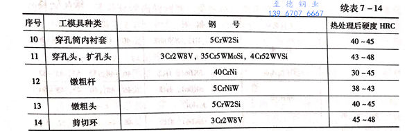 对于以上挤压工模具的材料,一般的选择是: