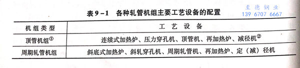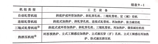 各种制管机组的工艺设备配置件表 9-1