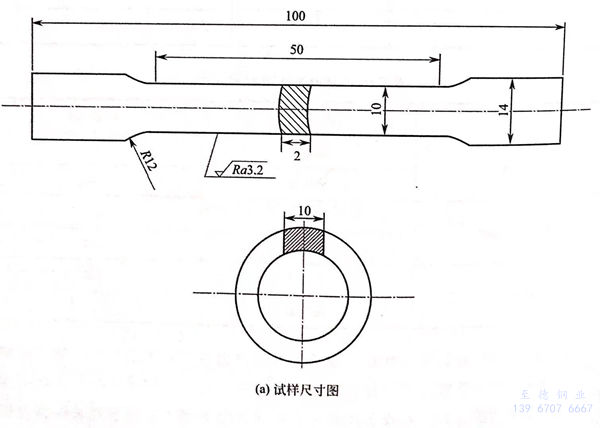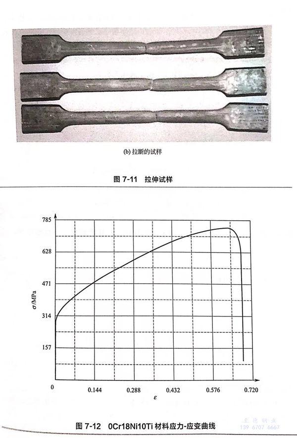 为获得准确的换热管材料特性,特从废热锅炉制造厂家获取管材,采用万能拉伸试验设备进行材料的拉伸试验。材料试样的制造及拉伸试验过程按照GB/T228.1-2010《金属材料拉伸试验第1部分;室温试验方法》标准进行试验。试样图纸以及加工试样如图7-11所示,拉伸试验的应力-应变曲线如图7-12所示。