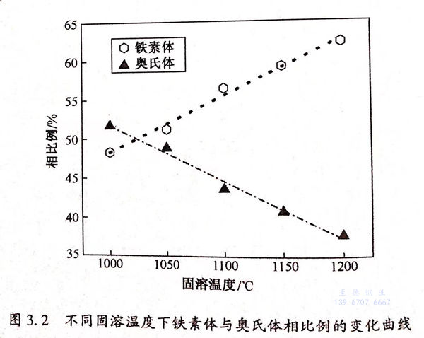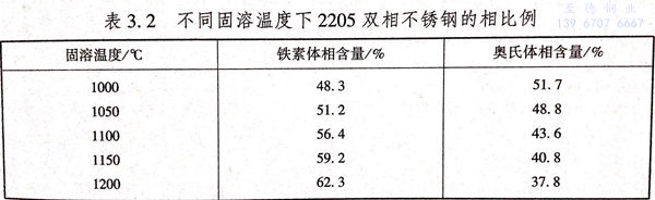 因此在本实验的6个固溶温度中,当固溶温度为1050℃时,双相不锈钢相比例最接近1:1。
