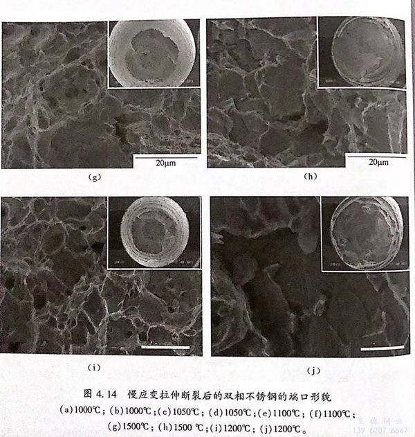 因为氢的进入,导致材料出现氢脆,慢应变速率拉伸断裂表现为氢致开裂,此时,氢致开裂成为应力腐蚀开裂的主要原因。对于双相钢来说,其相对于对单一相钢更容易受氢脆的影响。因此,材料的应力腐蚀敏感性较未充氢时有较明显的增加。