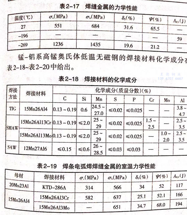 3. 奥氏体低温无磁钢的焊接材料