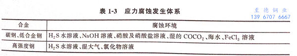 应力腐蚀断裂是金属在应力和环境共同作用下发生的破坏,并不是所有的金属都会发生应力腐蚀,不同的金属发生应力腐蚀的环境是不一样的,表1-3列出了目前发现的应力腐蚀合金+环境体系。从表1-3可以看出,奥氏体不锈钢发生应力腐蚀的环境较广,在高温环境中的水蒸气、湿润空气等环境中都可能发生。