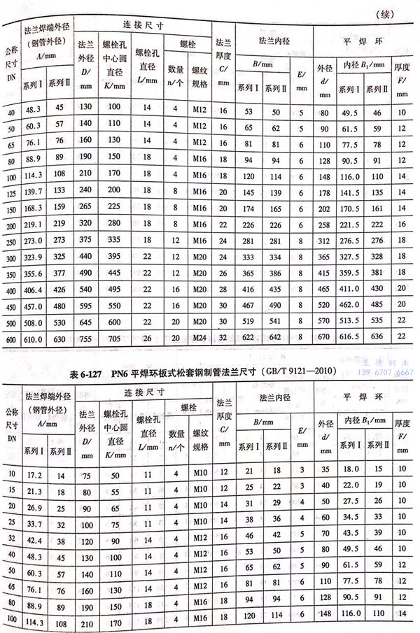 示例 2: 公称尺寸DN400、公称压力PN40、凹凸面(MF)平焊环板式松套钢制管法兰(PL/C)、配用英制管(系列Ⅰ)、材料为06Cr19Ni10,其标记为:法兰 DN400-PN40 PL/C MF Ⅰ 06Cr19Ni10 GB/T 9121