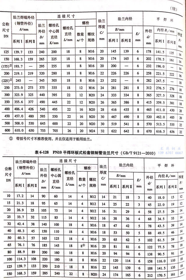示例 1: 公称尺寸DN250、公称压力PN16、突面(RF)平焊环板式松套钢制管法兰(PL/C)、配用米制管(系列Ⅱ)、材料为Q235A,其标记为: 法兰 DN250-PN16 PL/C RF ⅡQ235A GB/T 9121