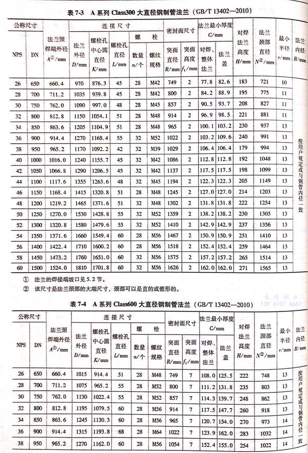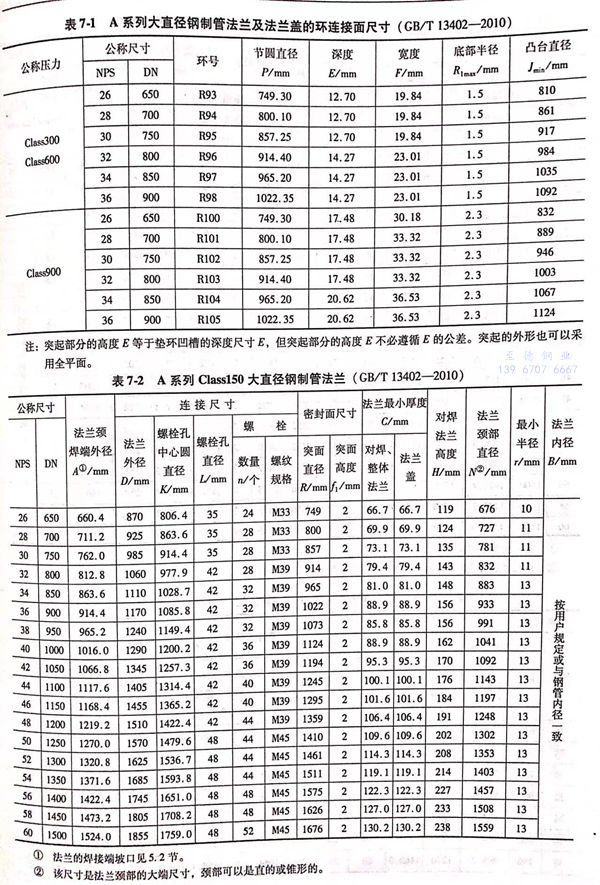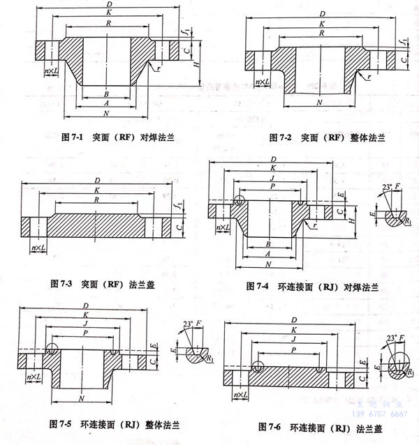 A 系列大口径不锈钢法兰的尺寸见图 7-1~图 7-6 及表 7-1~表 7-5。