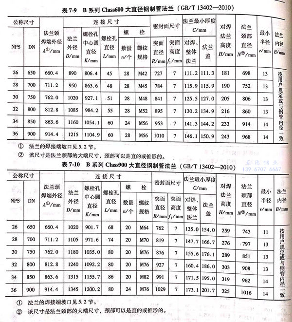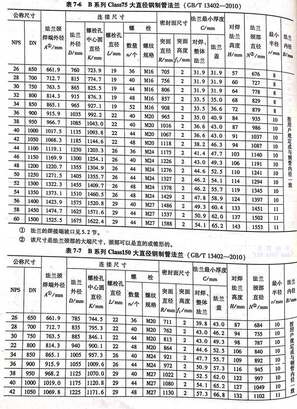 B 系列大直径钢制管法兰的尺寸见图 7-1~图 7-3 及表 7-6~表 7-10。
