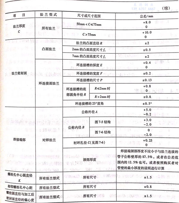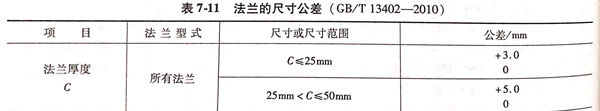 不锈钢法兰的尺寸公差见表 7-11 。