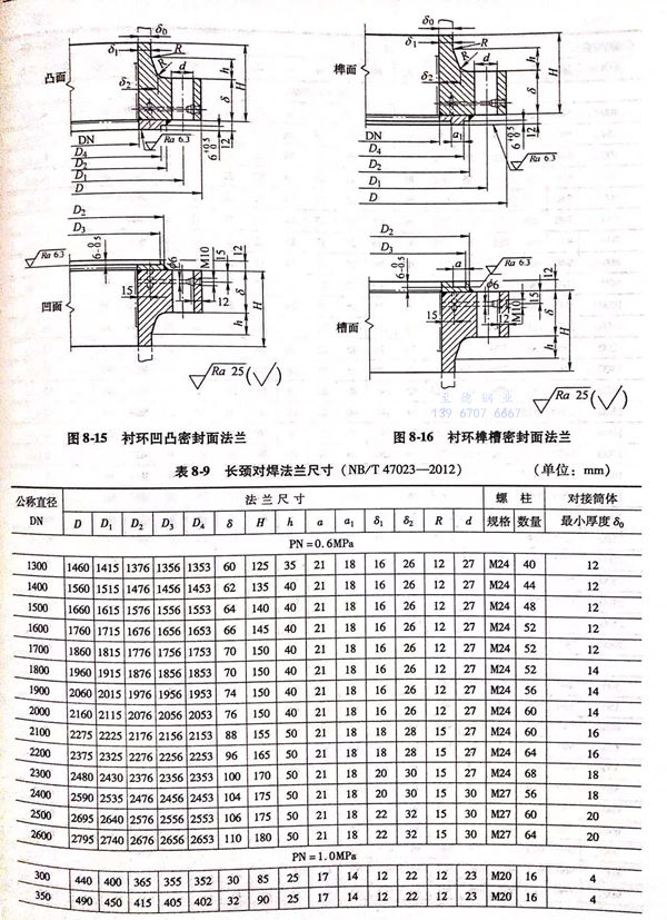 5. 衬环凹凸密封面法兰型式如图8-15所示,尺寸见表8-9。