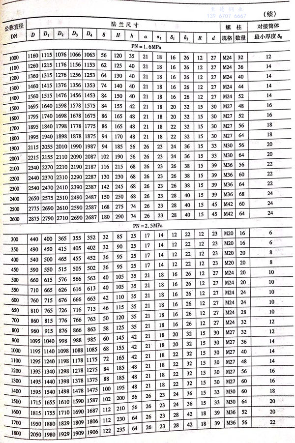 1. 平密封面法兰型式如图8-11所示,尺寸见表8-9。
