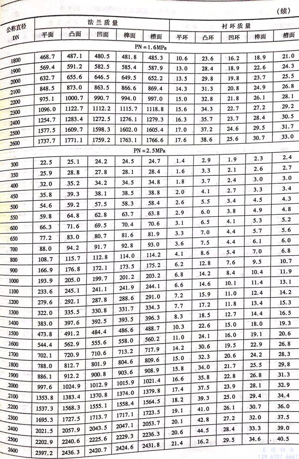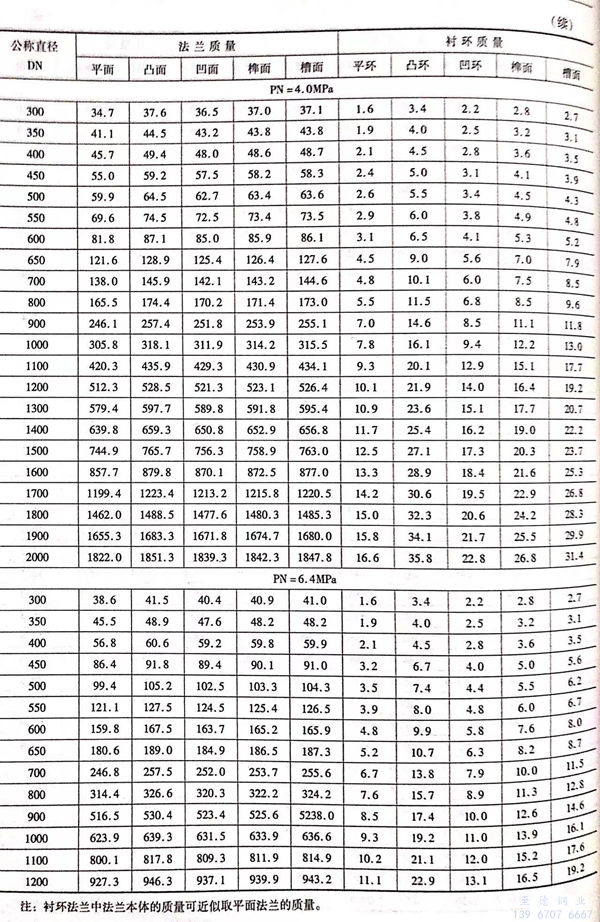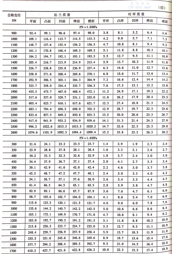 7. 长颈对焊法兰及其衬环质量见表 8-10 。