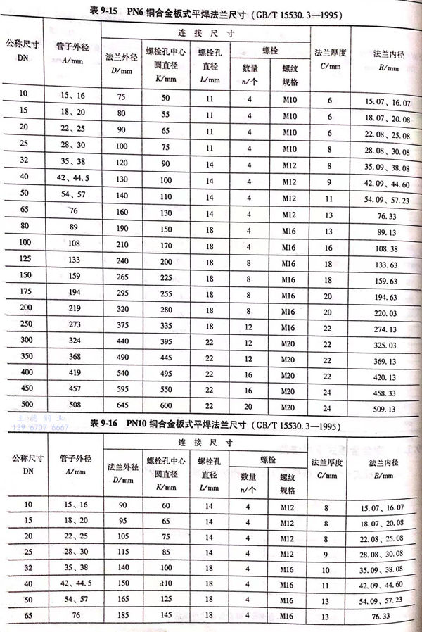 铜合金板式平焊法兰的型式与尺寸见图 9-5 和 表 9-15~表 9-18。