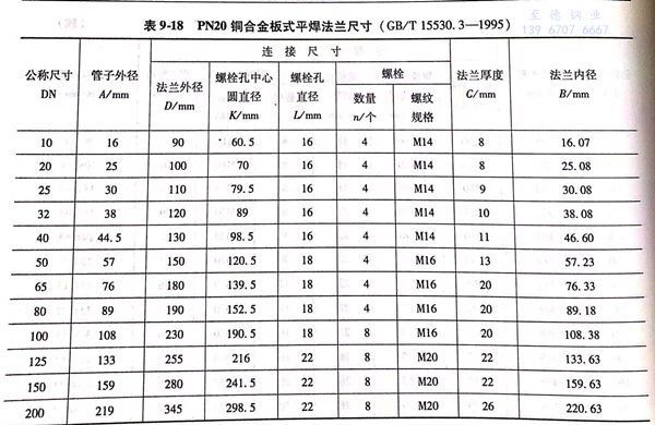 铜合金板式法兰的型式图与尺寸表