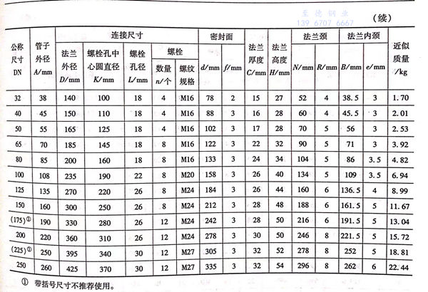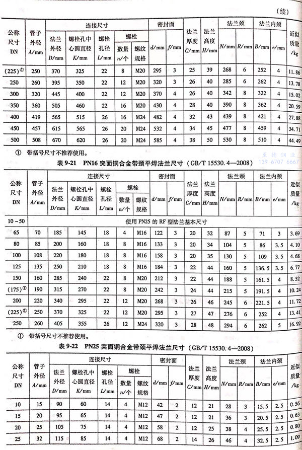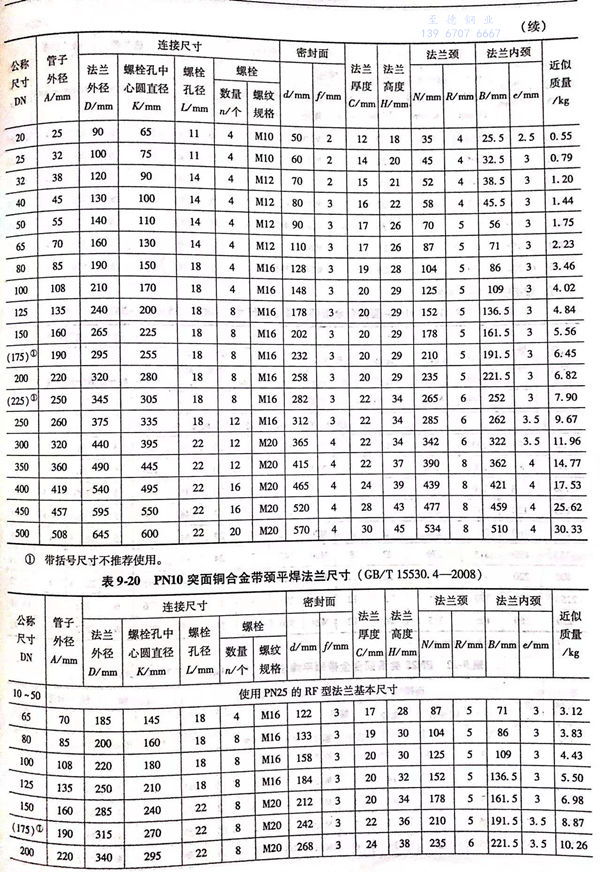突面(RF)铜合金带颈平焊法兰的型式与尺寸见图 9-6 和表 9-19~表9-22。