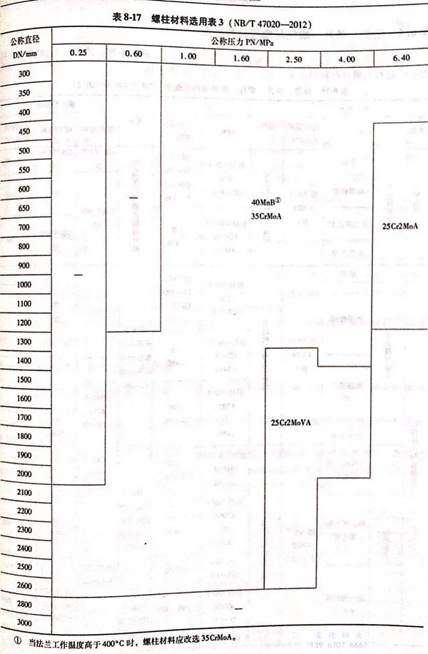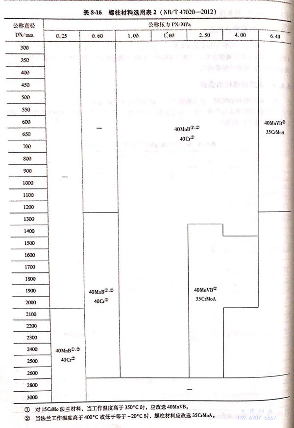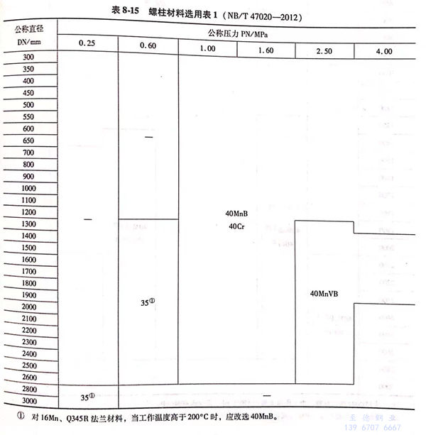 压力容器法兰用螺柱材料选用表见表8-15~表8-17。