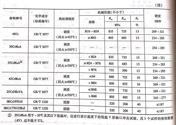 专用紧固件所用材料的化学成分、热处理制度及机械性能见表10-6。超高温高压法兰用紧固件的材料牌号及化学成分、热处理制度和产品的机械性能由供需双方协商确定。