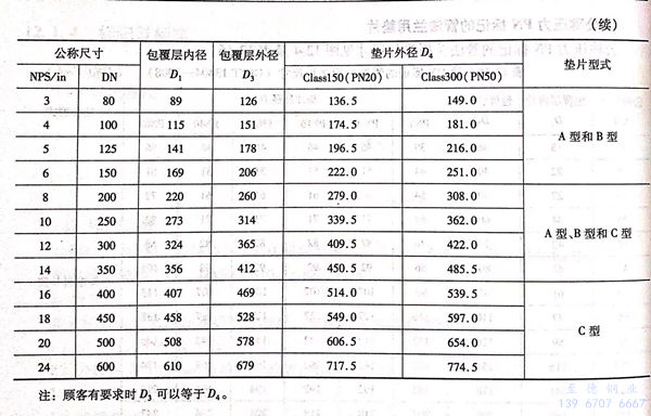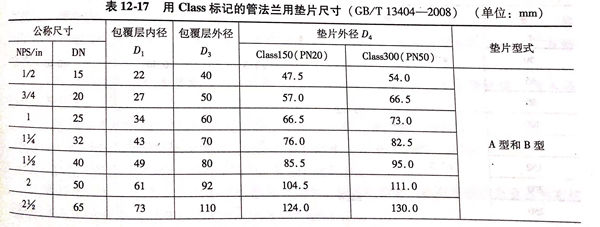b. 公称压力用Class 标记的垫片尺寸极限偏差见表12-19.