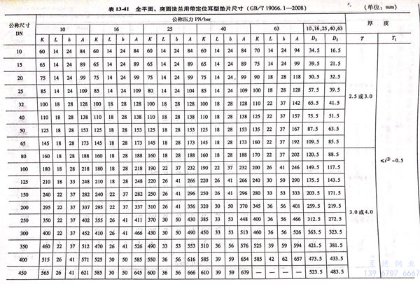 d. 全平面、突面法兰用带定位耳环型垫片尺寸见图 13-25 和 表 13-41。