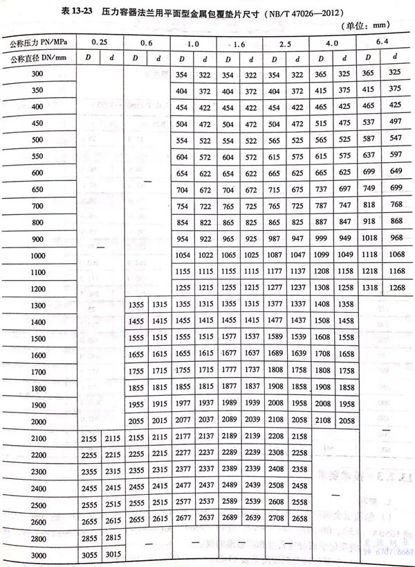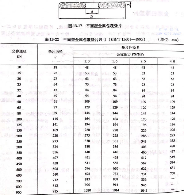 平面型金属包覆垫片的反包宽度L见图13-19及表13-26.