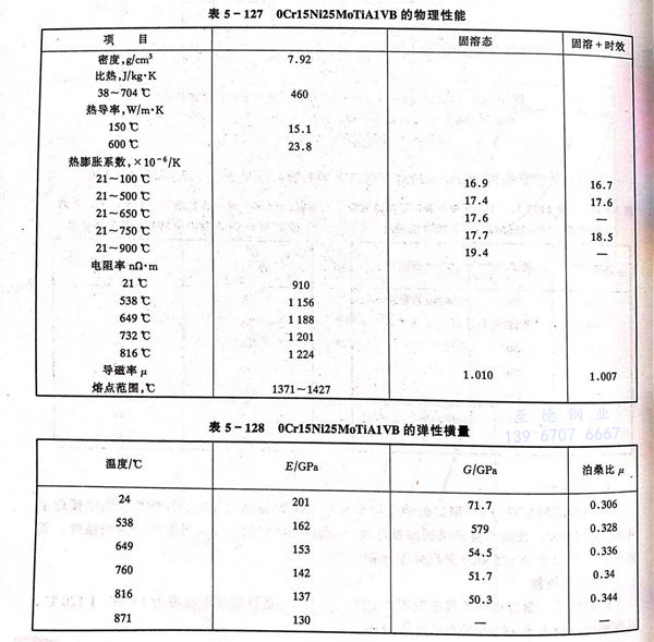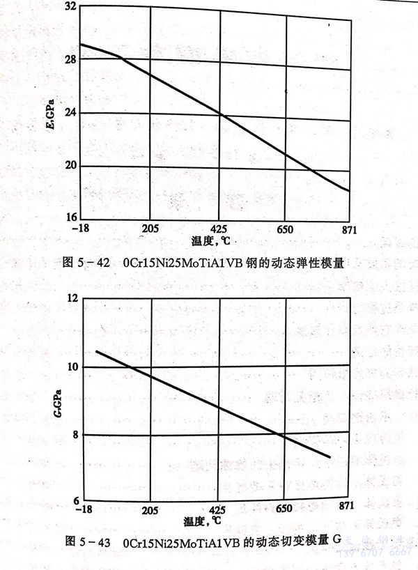 0Cr15Ni25MoTiA1VB、A-286 不锈钢的物理性能见表5-127,表5-128和图5-42、图5-43。