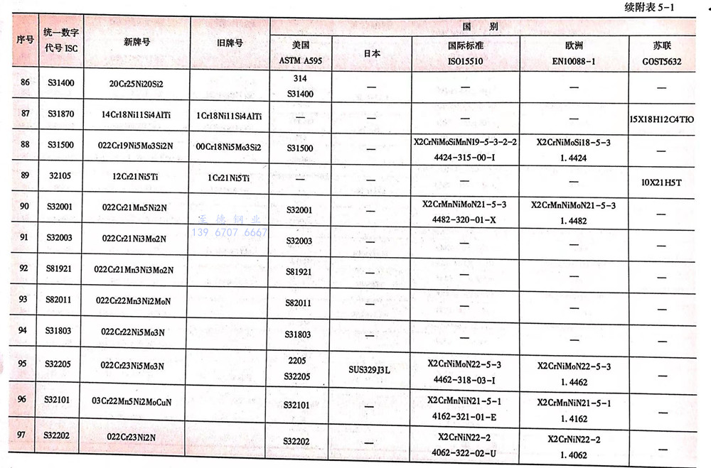 中国不锈钢牌号与各国不锈钢牌号对照表(不锈钢材料牌号对照大全)--由bb708电子游戏娱乐转载