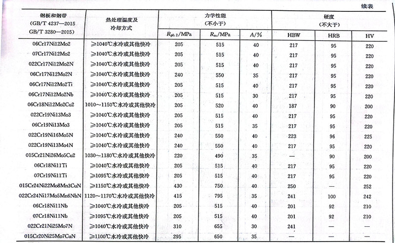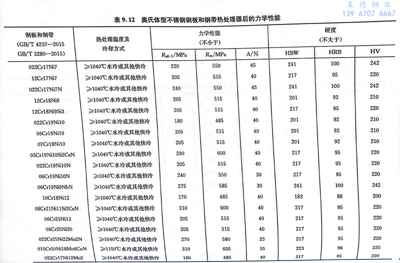 022Cr25Ni22Mo2N 不锈钢的热加工性能良好,但较常规奥氏体不锈钢困难,其冷加工的性能良好,可进行冷轧、拔及其他冷成形工艺加工,固溶处理温度为1060~1150℃,水冷。该钢冷轧钢板、钢带经固溶处理后的力学性能见表9.12。该钢在尿素汽提塔中的使用温度约为200℃。