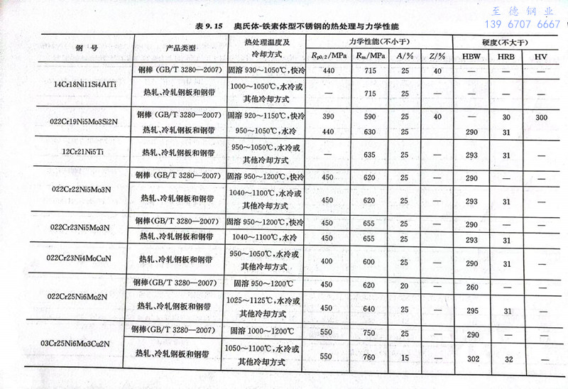 我国常用双相不锈钢的钢号及其力学性能见表9.13和表9.15。