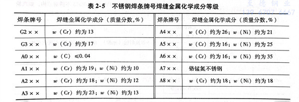 2. G或A后面第一位数字,表示焊缝金属的主要化学成分,其等级按表2-5编排。