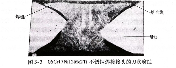 刀状腐蚀只是焊接接头出现的一种特殊的晶间腐蚀,它也与Cr的C化合物(Cr23C6)析出有关。它经历了高温过热和中温敏化两个热过程而发生的。