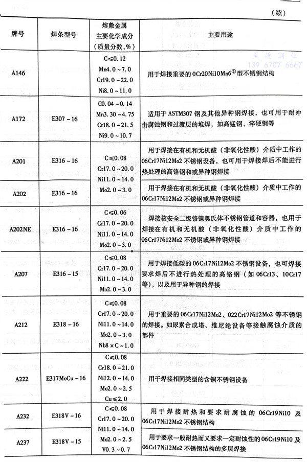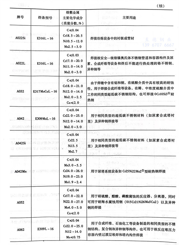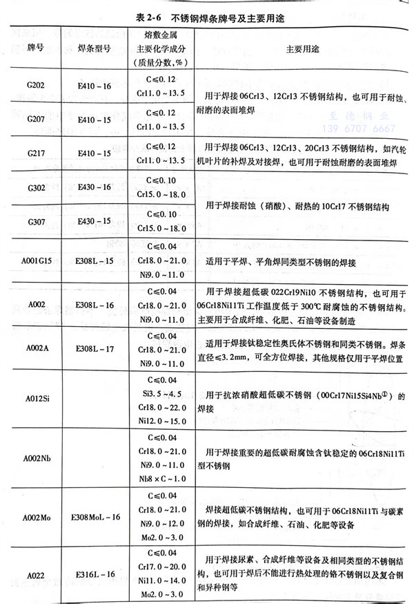 所选用焊条应能获得化学成分与母材金属相近的熔敷金属。为了确保焊缝金属的耐蚀性不低于母材金属,其铬、镍含量略高于母材金属,而碳含量又要低于母材金属。各种钢材的匹配焊条可按表2-4和表2-6进行选取。