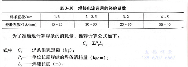 焊条直径按不同母材金属厚度来选择,见表3-9。焊接电流选用的经验系数见表3-10。