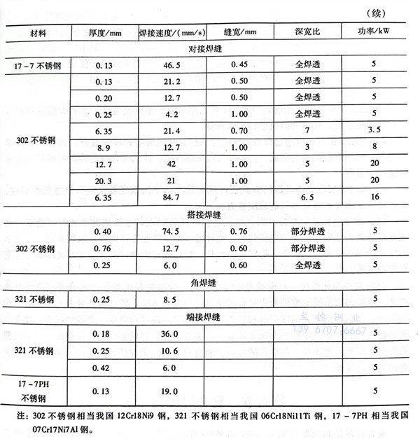 2. 奥氏体型不锈钢的热导率只有碳钢的1/3,对激光的吸收率比碳钢略高,所以同样条件下奥氏体型不锈钢激光焊熔池比碳钢稍微低一点(5%~10%)。