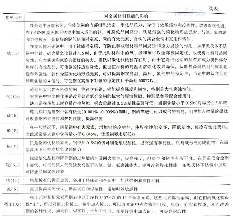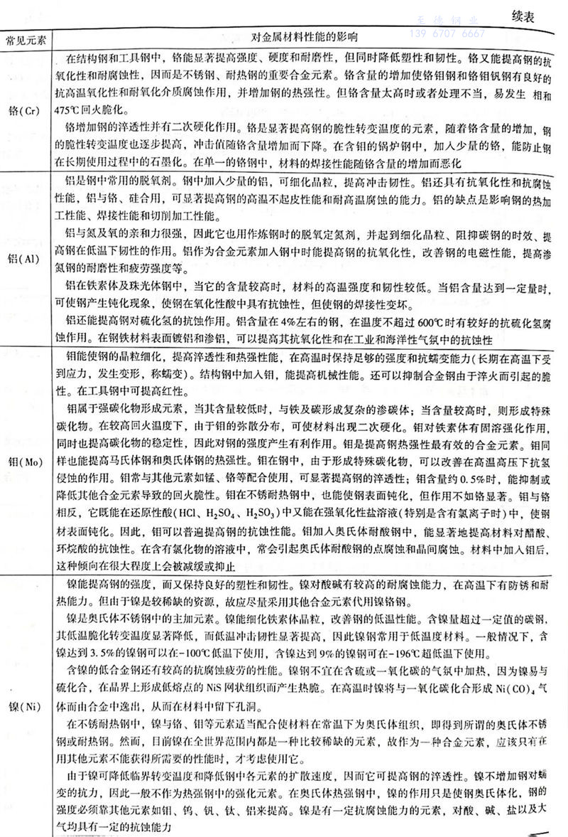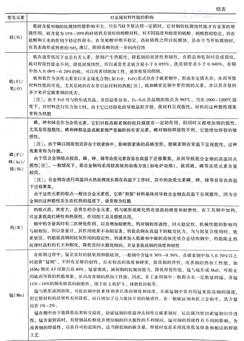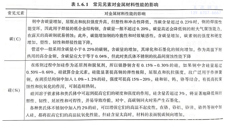 常见元素对金属材料性能的影响见表1.6.1。