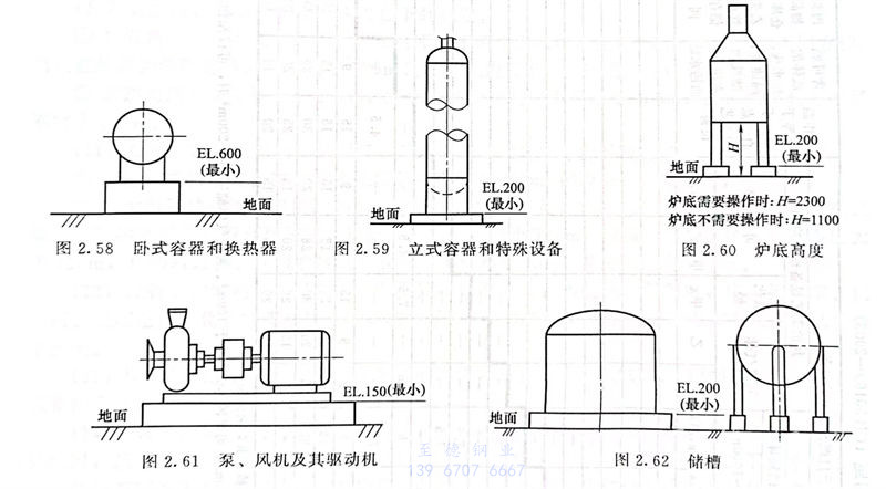 管道安装过程中装置设备最小基础标高见表 2.3