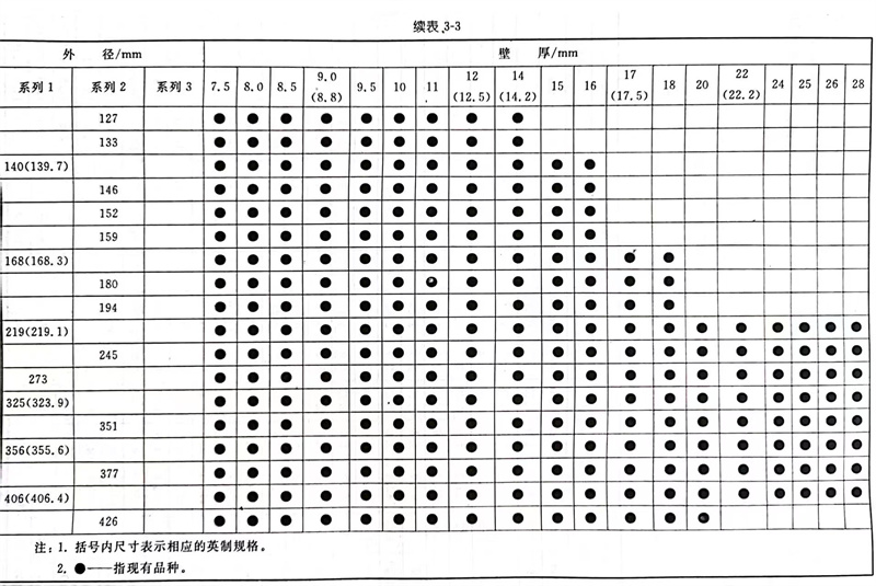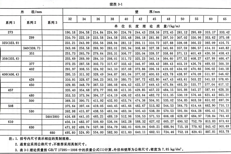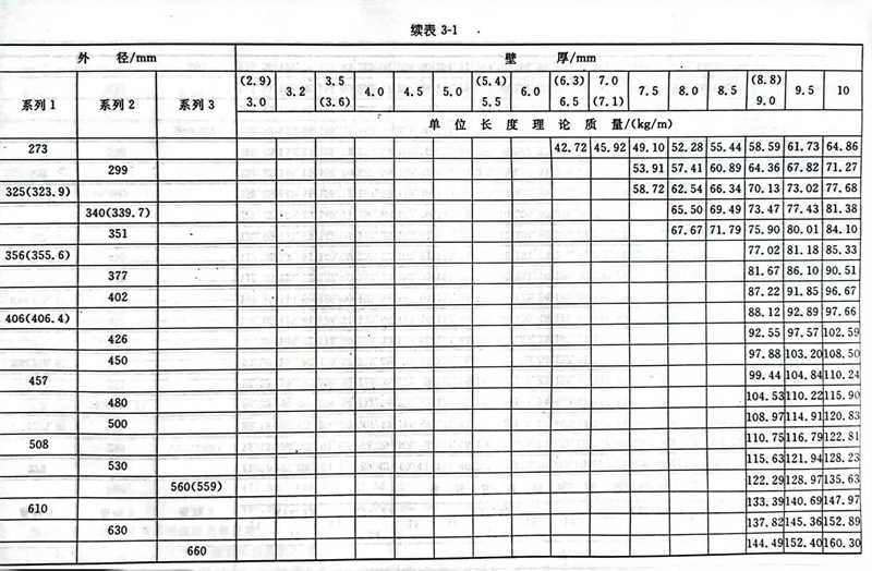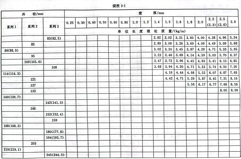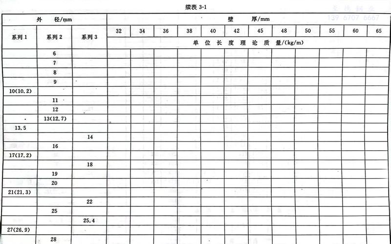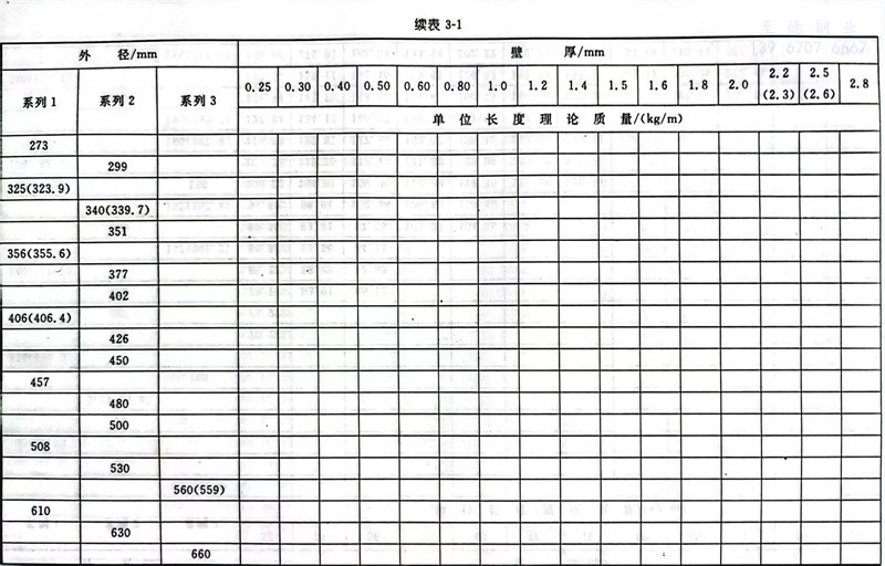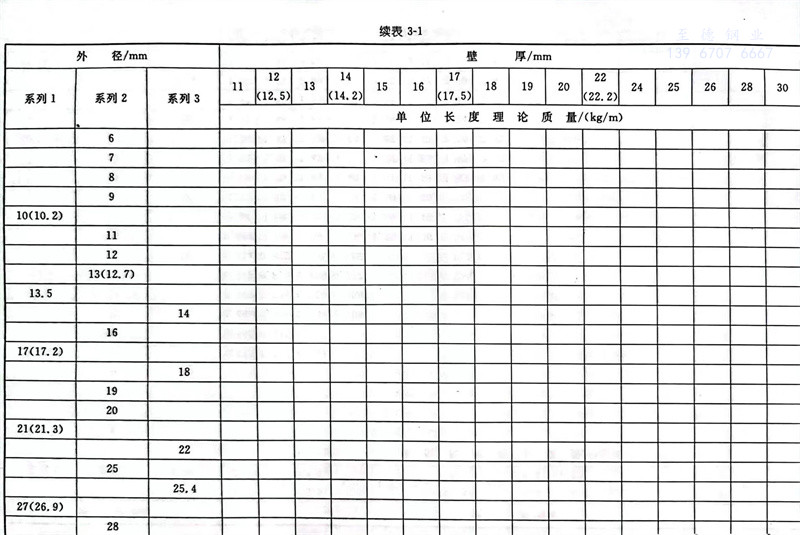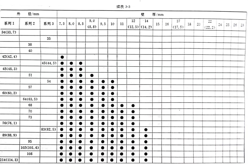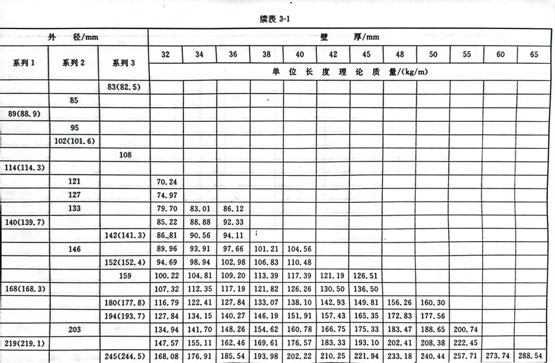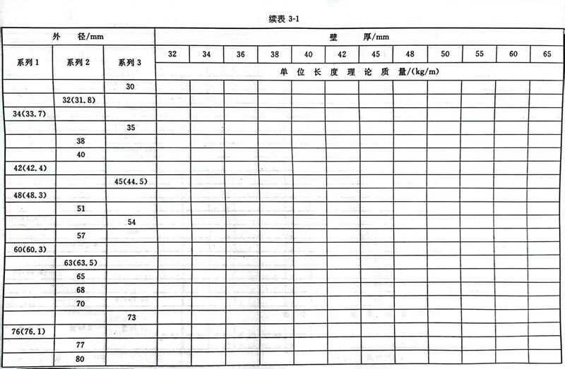 普通钢管外径分为系列1、系列2和系列3,详见表3-1。