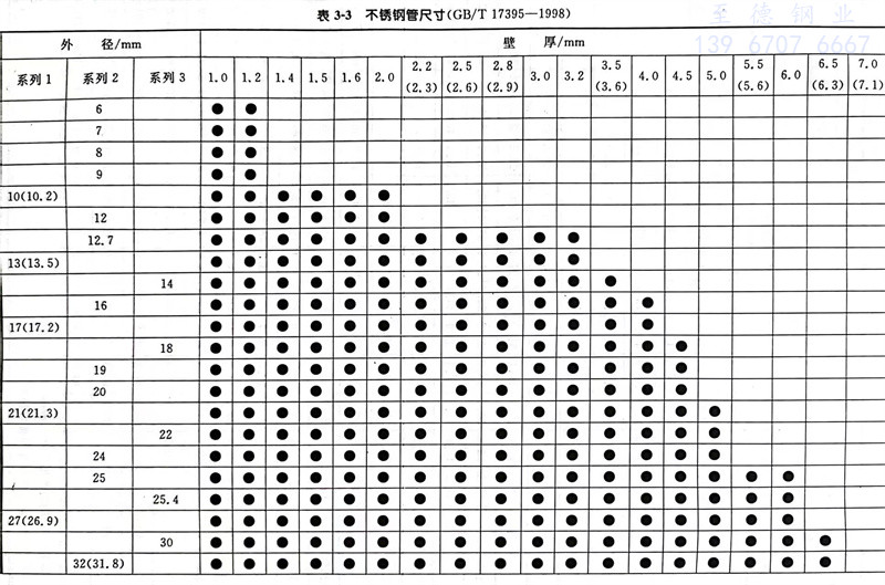 不锈钢管外径分为系列1、系列2和系列3,详见表3-3。