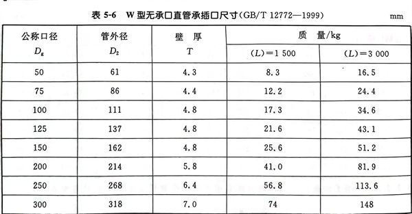 a. W 型无承口直管承插口型式见图 5-6 ,尺寸见表 5-6 。