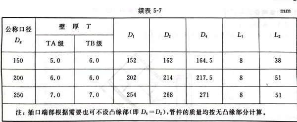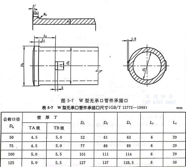 b. W 型无承口管件承插口型式见图 5-7 ,尺寸见表 5-7 。