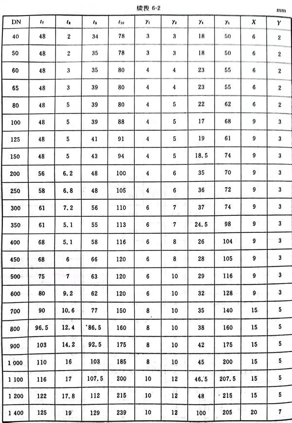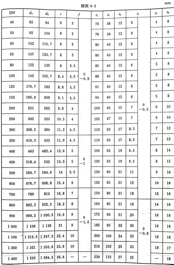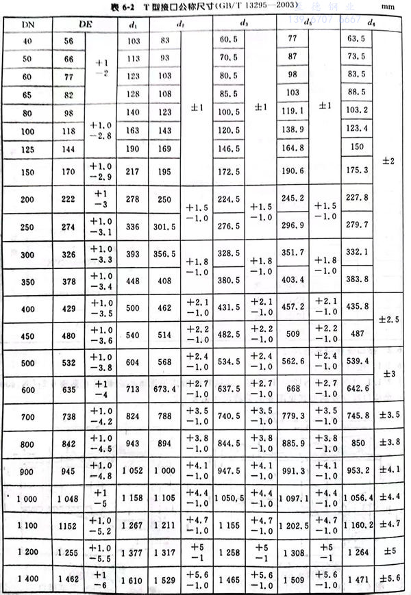 1. DN40~DN1200 T型接口球铁管的型式见图6-2,公称尺寸见表6-2;DN1400T型接口球铁管的型式见图6-3,公称尺寸见表6-2。