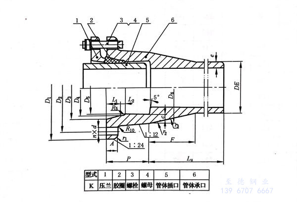 球墨铸铁管件接口配套件型式与尺寸主要有以下几种: